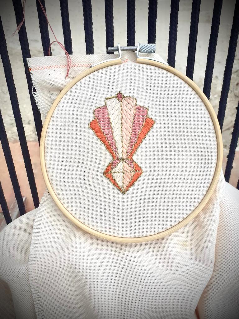 Cerise sur le gâteau le « Diamant Fabricoleuse » pensé par la fondatrice du collectif et brodé à la main par Stéphanie Stabile, la tisserande de l’équipe !