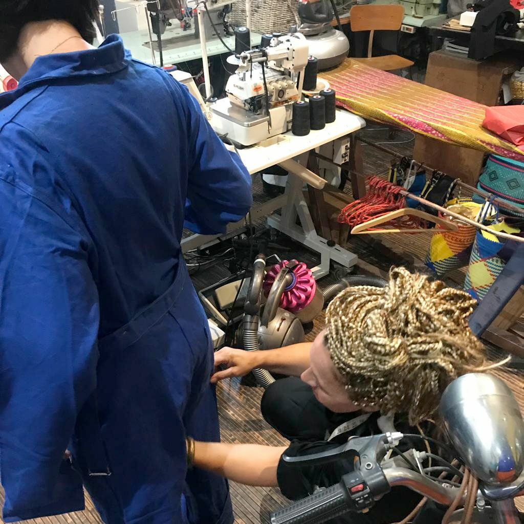 « Chez Les Fabricoleuses, nous voulions avoir des vêtements de travail dans lesquels nous serions vraiment à l’aise et les bleus, faits pour les hommes, sont toujours trop grands, trop larges, inadaptés »